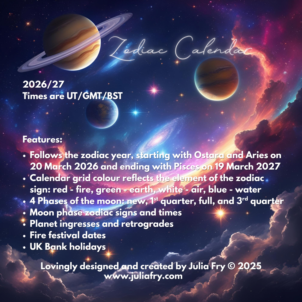- Follows the zodiac year: March 20, 2026 (Ostara & Aries) – March 19, 2027 (Pisces)